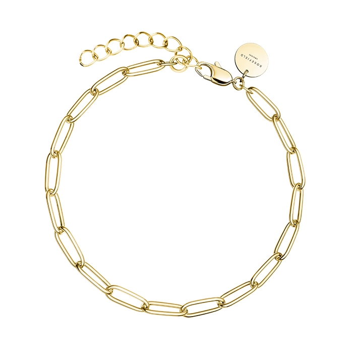 Dette smukke armbånd med aflange led, er prikken over i'et på ethvert outfit.