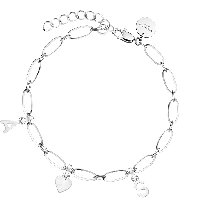 Armbåndet kan gøres mere personlig ved at påsætte Rosefield vedhæng, som let klikkes på kæden.