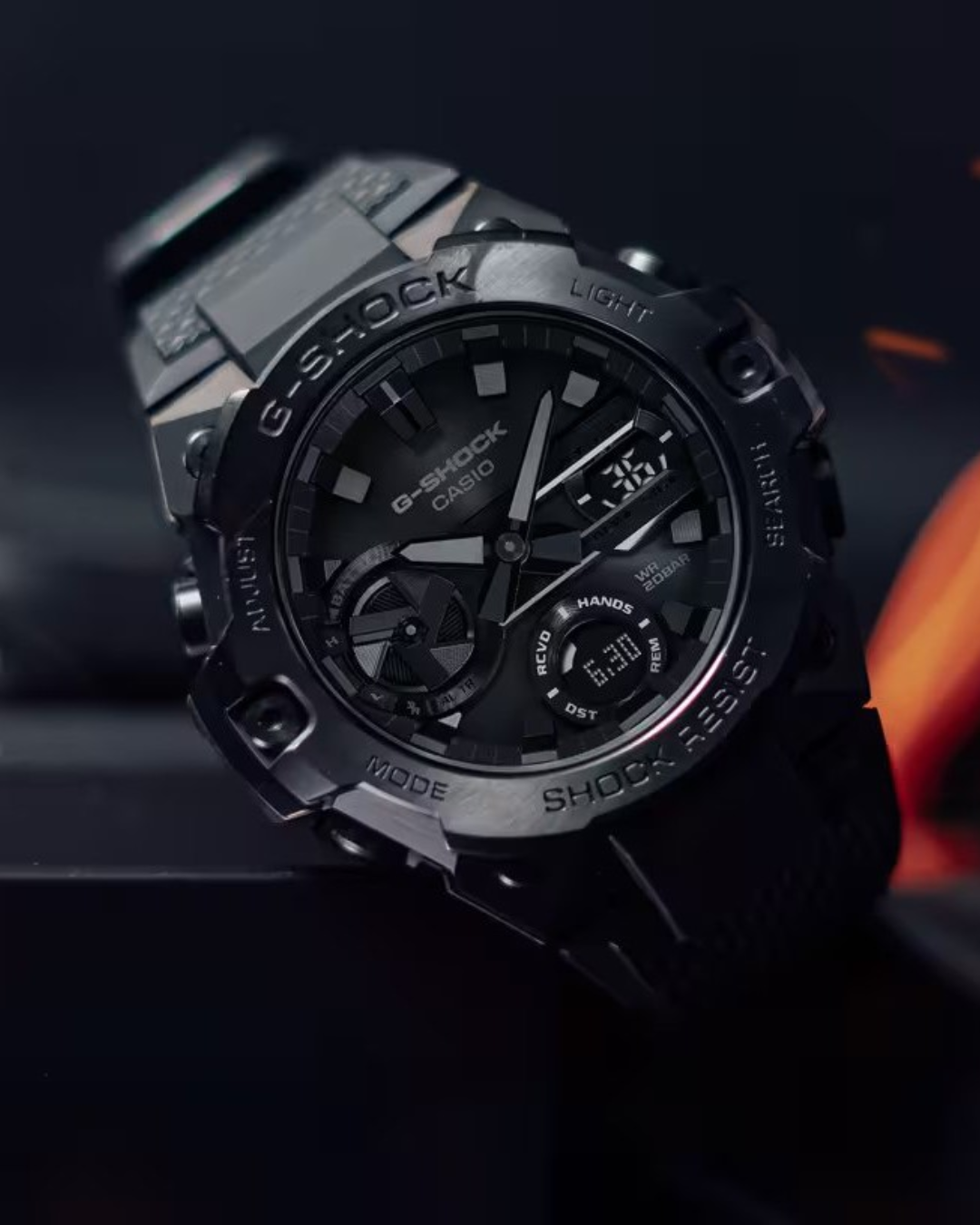 • Stødsikkert design: G-SHOCK-seriens signaturbeskyttelse mod stød og vibrationer.