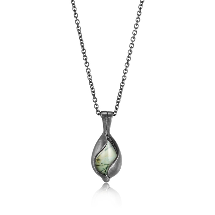 Lille oxideret smykkeæg i sølv, prehnit - Blicher Fuglsang
