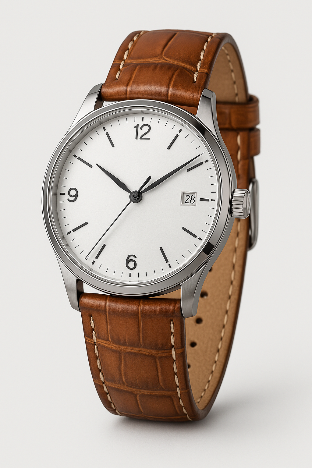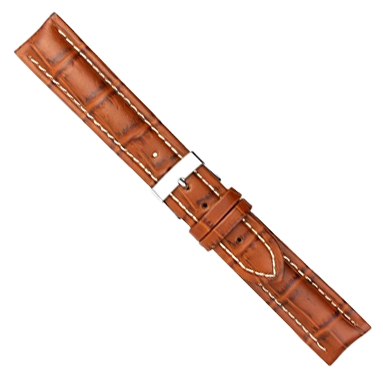 Urrem i cognacfarvet polstret imiteret alligator skind med lys syning føres i 20+22mm