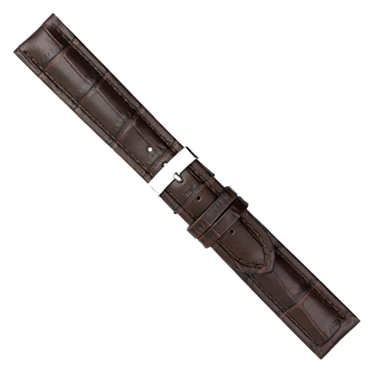 Urrem i mørkebrun polstret imiteret alligator skind føres i 20+22mm