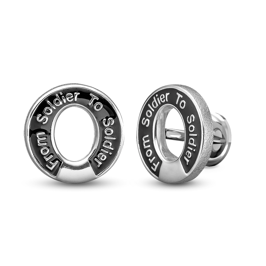 Flotte manchet knapper med teksten "From Soldier To Soldier" skrevet i den sorte emalje. Manchet kanpperne passer perfekt sammen med armbåndene og ikke mindst låsene., 14,5 mm