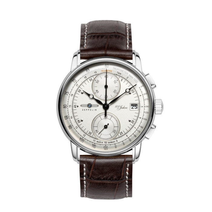 Zeppelin 100 Year 42 x 12 mm / 78 gr Cal. 6S11, Rustfri stål Herre ur med brun læderrem rem.